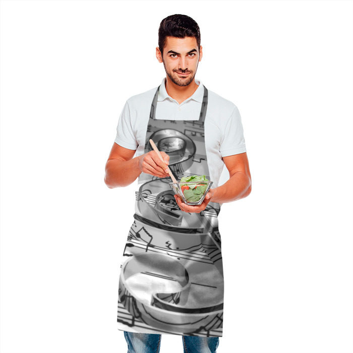 Фартук 3D сшит из гладкой синтетической ткани, по всей поверхности которой наносится рисунок. Принт впечатывается в ткань и сохраняет свою яркость и четкость даже спустя сотни стирок. Завязки длинные, так что фартук подойдет людям с разной фигурой. Можно заказать со своим дизайном.