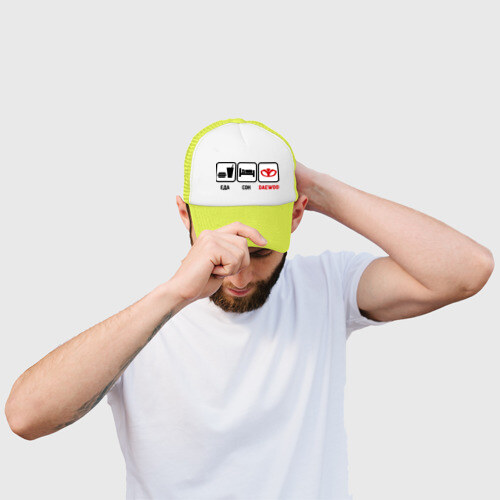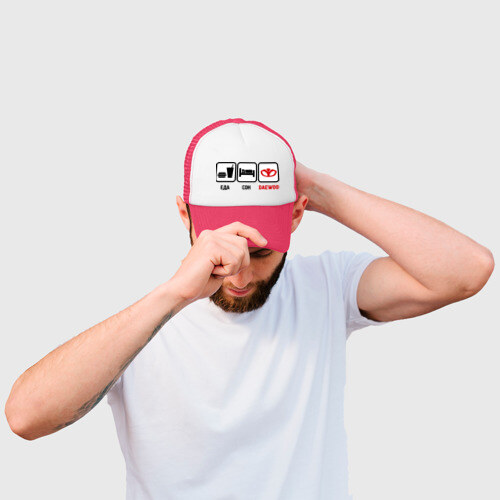 Кепка тракер с сеткой с принтом Главное в жизни - еда, сон, daewoo.