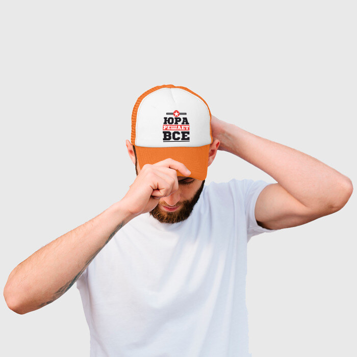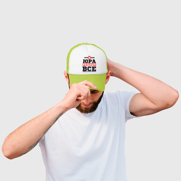 Кепка тракер с сеткой с принтом Юра решает все