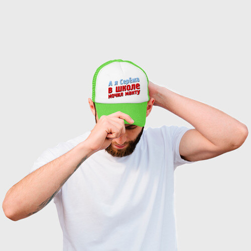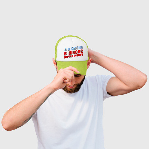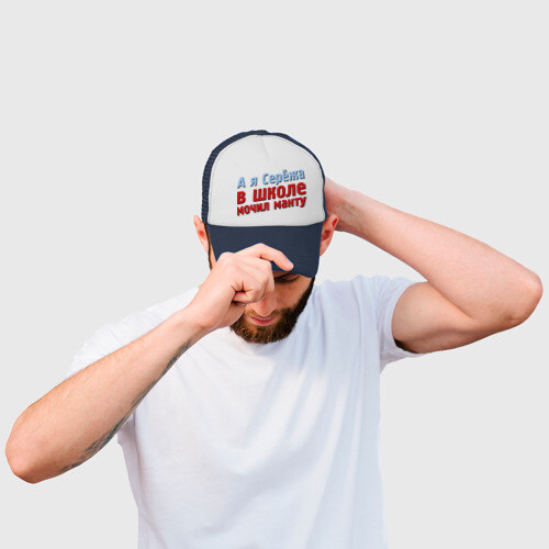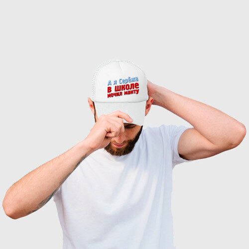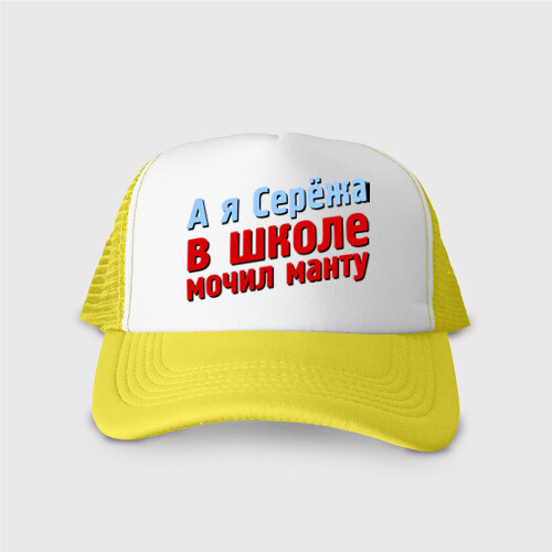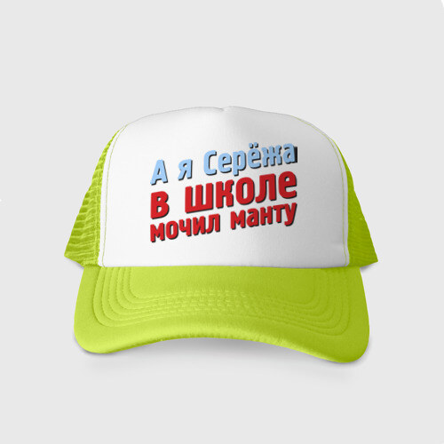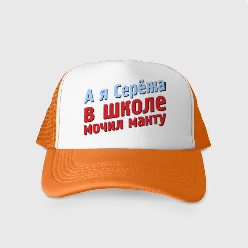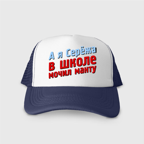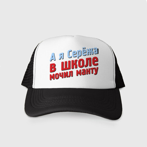 Кепка тракер с сеткой с принтом Сережа мочил манту
