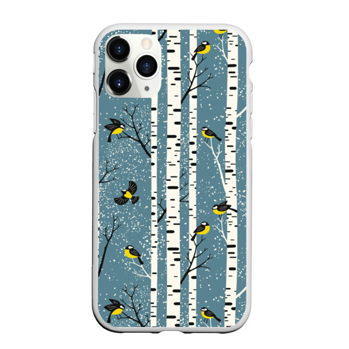 Чехол для iPhone 11 Pro матовый СИНИЧКИ НА БЕРЁЗАХ