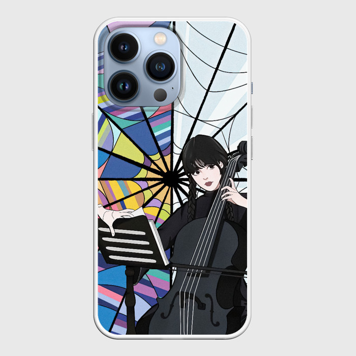Чехол для iPhone 13 Pro УЭНСДЭЙ ИГРАЕТ НА ВИОЛОНЧЕЛИ НА ФОНЕ ОКНА