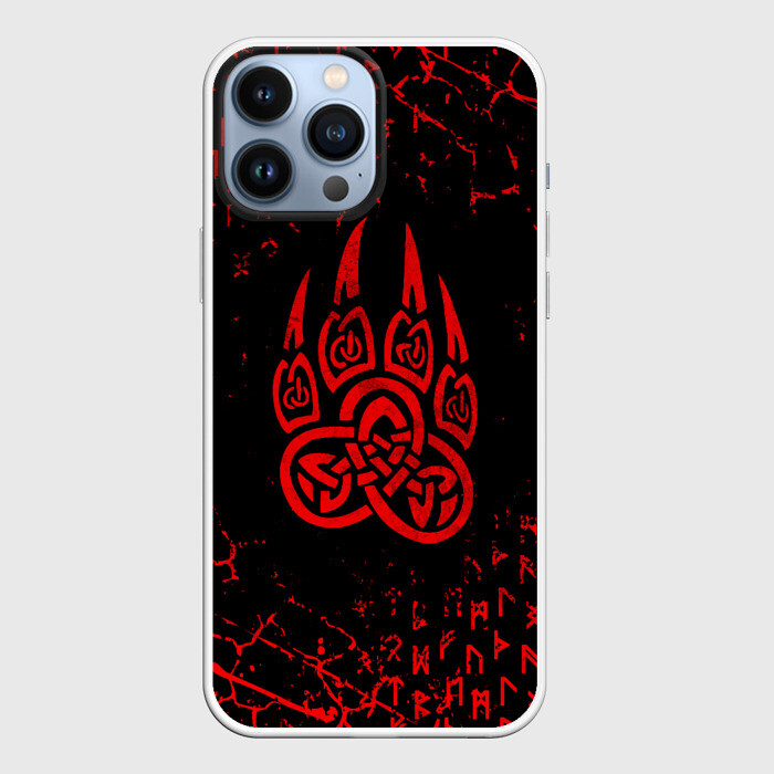 Чехол для iPhone 13 Pro Max ПЕЧАТЬ ВЕЛЕСА КРАСНЫЙ, ТРЕЩИНЫ, РУНЫ