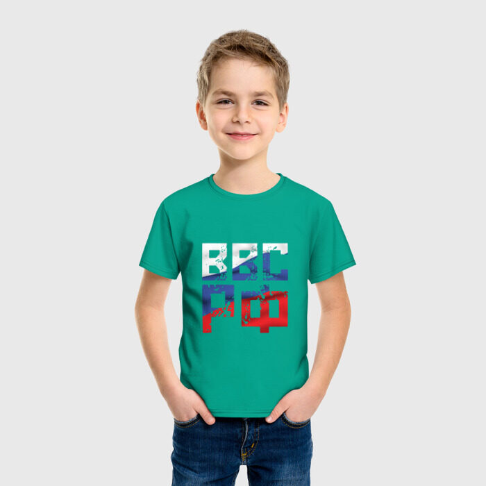 Детская футболка хлопок с принтом ВВС РФ триколор