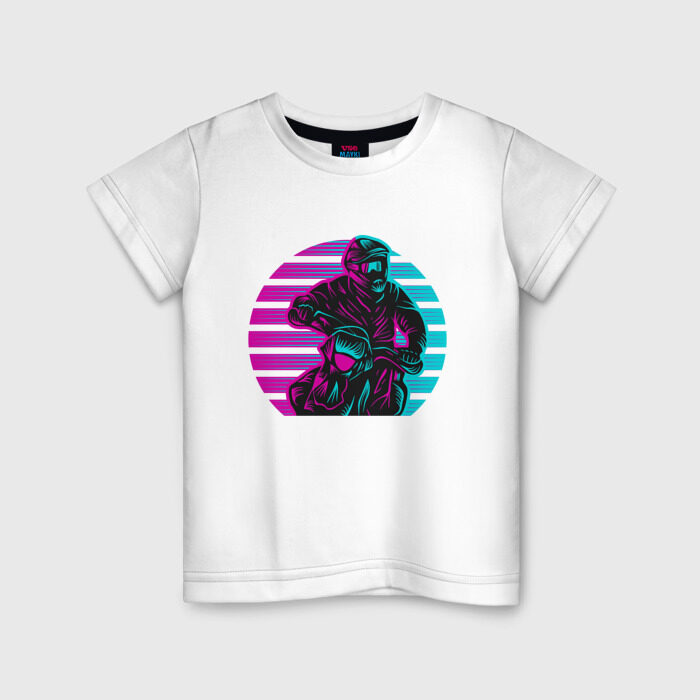 Детская футболка хлопок с принтом Неоновый мотоциклист