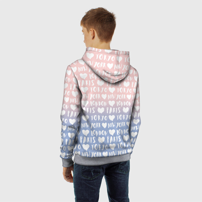 Детская толстовка 3D с принтом London, Paris, New York, Tokyo