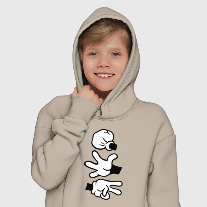 Детское худи Oversize хлопок с принтом Rock paper scissors swag