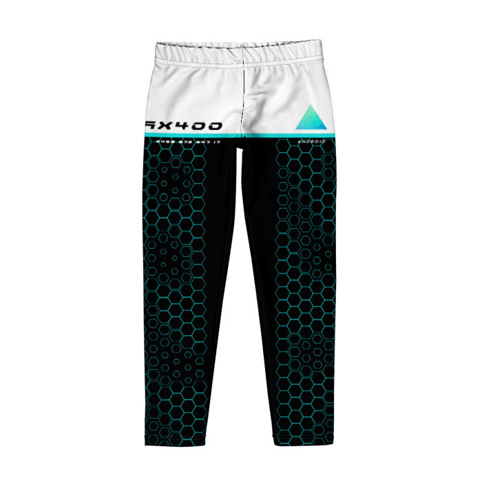 обтягивающие брюки из плотной синтетической ткани. На поясе — широкая резинка. Тянутся и хорошо держат форму. Подобрав футболку или толстовку, можно заказать костюм со своим дизайном.