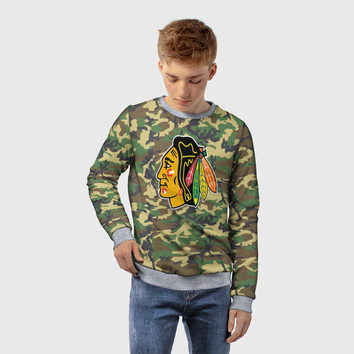 Детский свитшот 3D с принтом Blackhawks Camouflage