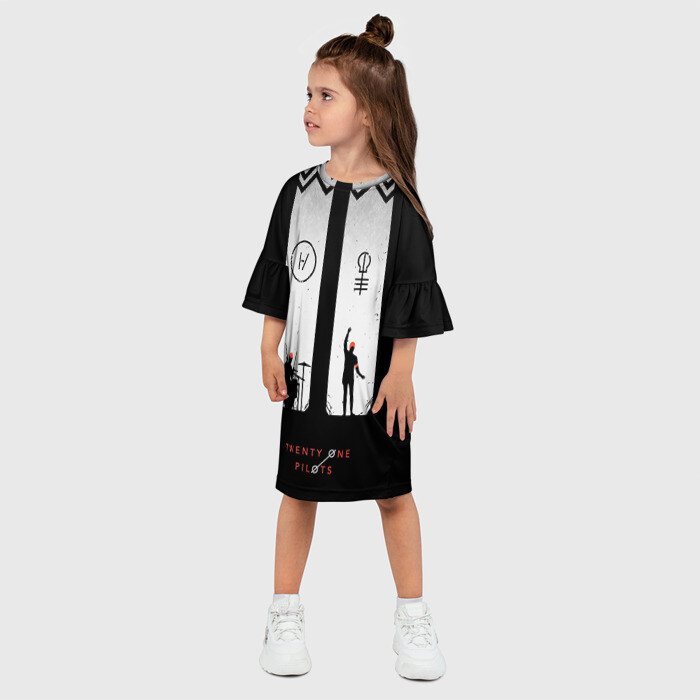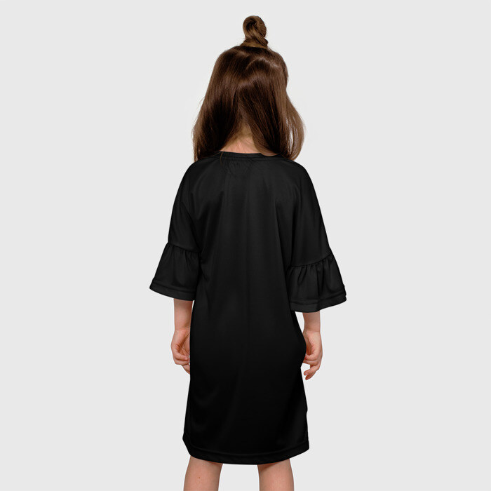 Детское платье свободного кроя из комфортной синтетической ткани. Благодаря свойствам ткани принт наносится по всей поверхности платья и позволяет цветам быть максимально яркими. Можно сделать со своим дизайном и превратить платье в праздничный костюм.