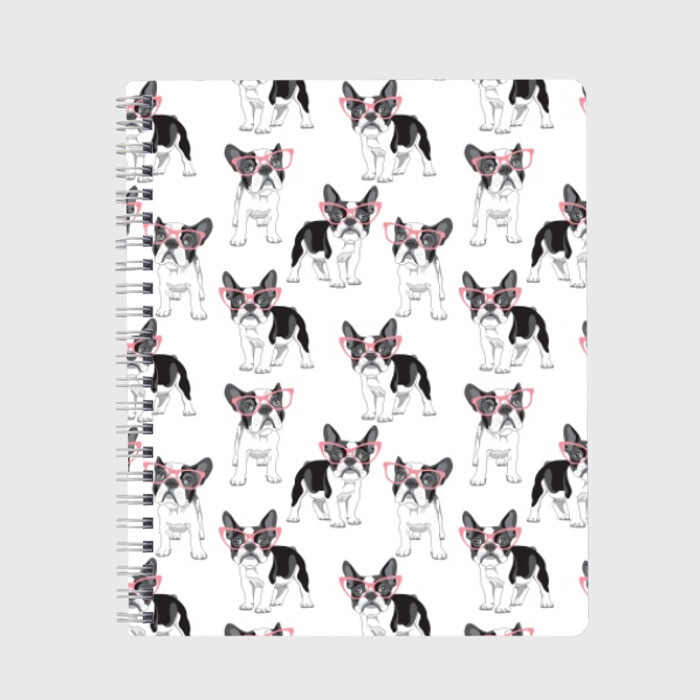 Тетрадь с принтом Французские бульдоги в очках