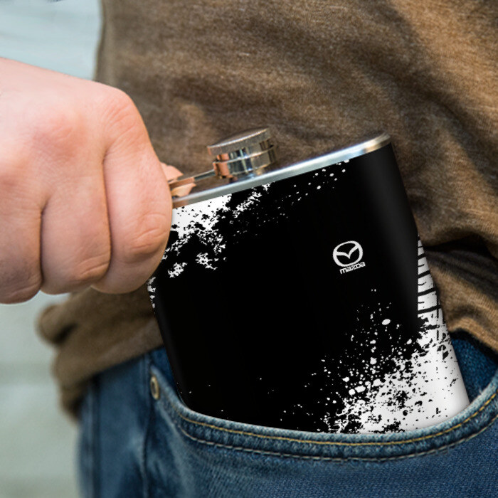 Металлическая фляжка с откручивающейся крышкой, которая имеет дополнительное крепление, так что не будет теряться. Принт наносится на специальную виниловую наклейку, которая покрывает боковые поверхности. Можно заказать со своим дизайном.