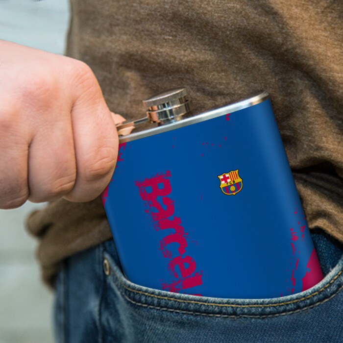 Металлическая фляжка с откручивающейся крышкой, которая имеет дополнительное крепление, так что не будет теряться. Принт наносится на специальную виниловую наклейку, которая покрывает боковые поверхности. Можно заказать со своим дизайном.