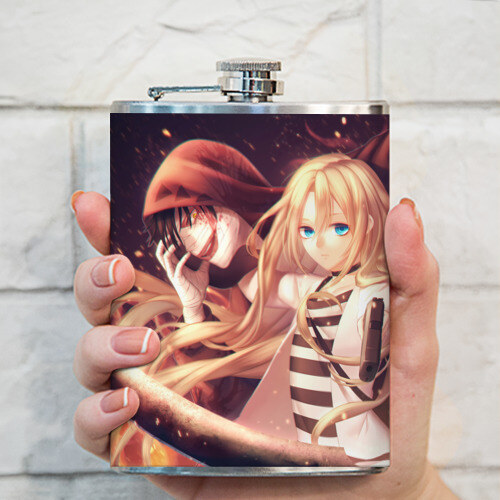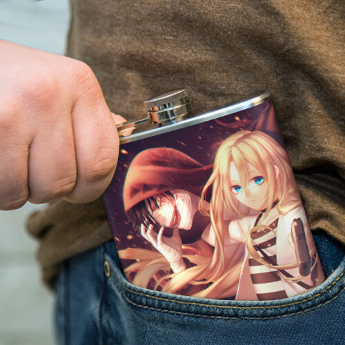 Металлическая фляжка с откручивающейся крышкой, которая имеет дополнительное крепление, так что не будет теряться. Принт наносится на специальную виниловую наклейку, которая покрывает боковые поверхности. Можно заказать со своим дизайном.