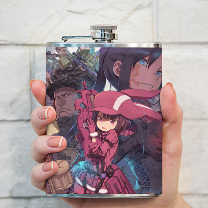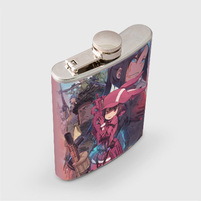 Металлическая фляжка с откручивающейся крышкой, которая имеет дополнительное крепление, так что не будет теряться. Принт наносится на специальную виниловую наклейку, которая покрывает боковые поверхности. Можно заказать со своим дизайном.