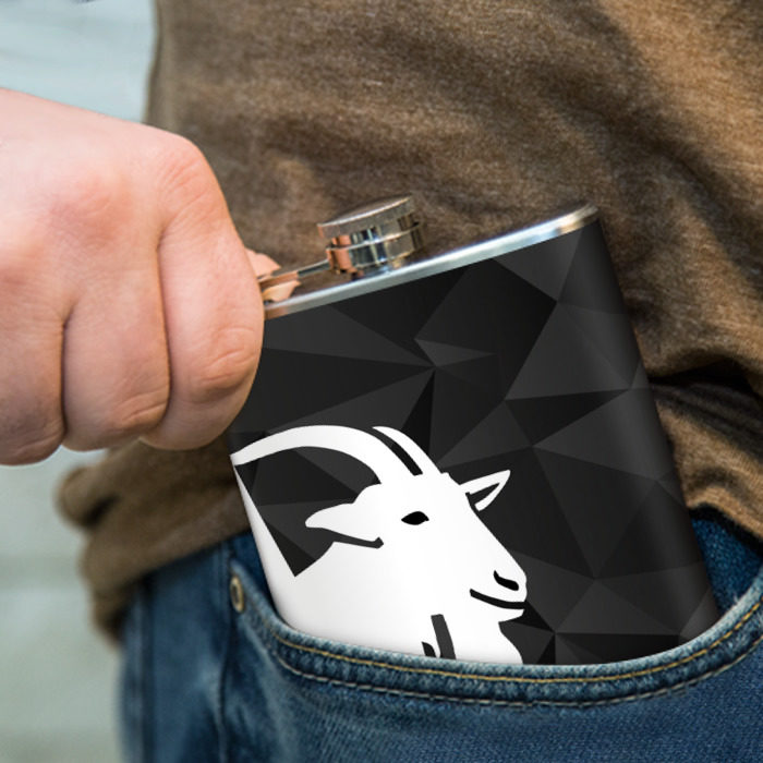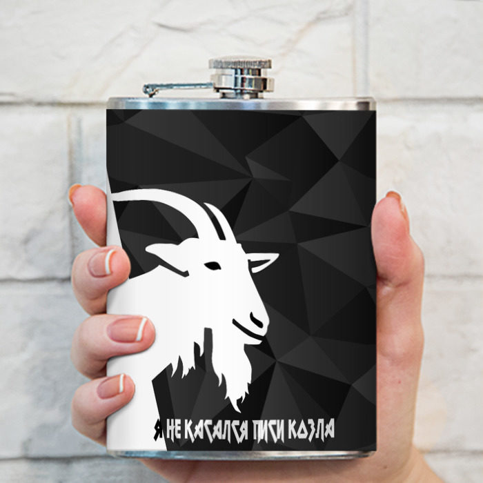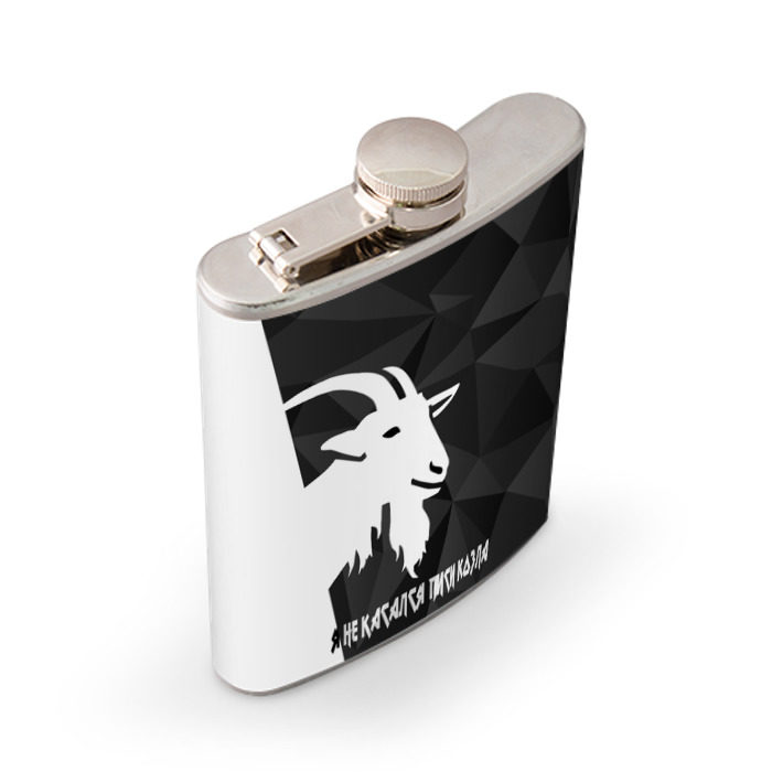 Металлическая фляжка с откручивающейся крышкой, которая имеет дополнительное крепление, так что не будет теряться. Принт наносится на специальную виниловую наклейку, которая покрывает боковые поверхности. Можно заказать со своим дизайном.