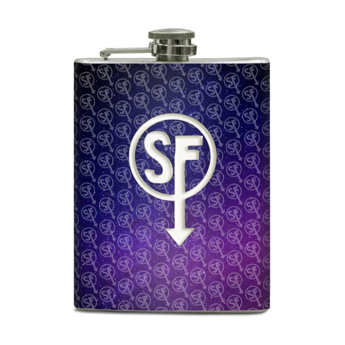 Металлическая фляжка с откручивающейся крышкой, которая имеет дополнительное крепление, так что не будет теряться. Принт наносится на специальную виниловую наклейку, которая покрывает боковые поверхности. Можно заказать со своим дизайном.