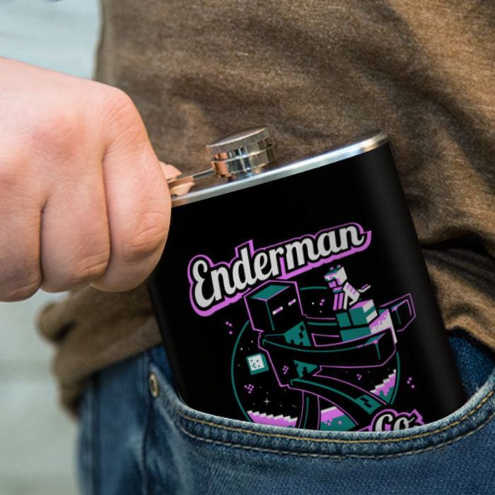 Металлическая фляжка с откручивающейся крышкой, которая имеет дополнительное крепление, так что не будет теряться. Принт наносится на специальную виниловую наклейку, которая покрывает боковые поверхности. Можно заказать со своим дизайном.