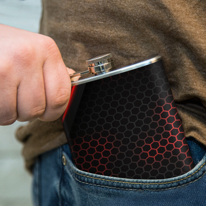 Металлическая фляжка с откручивающейся крышкой, которая имеет дополнительное крепление, так что не будет теряться. Принт наносится на специальную виниловую наклейку, которая покрывает боковые поверхности. Можно заказать со своим дизайном.