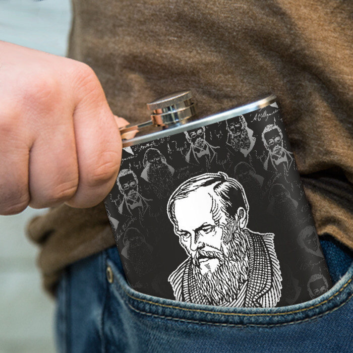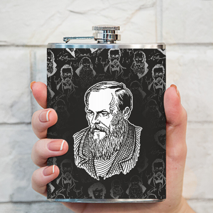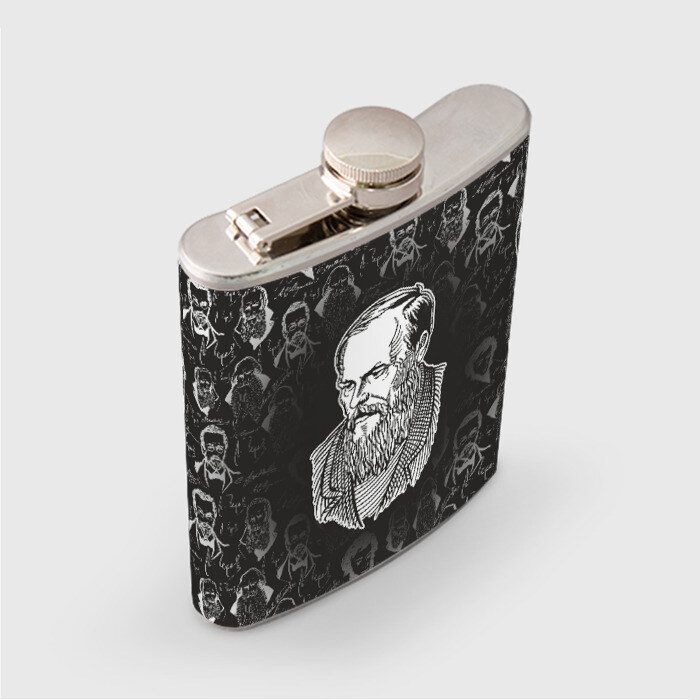 Металлическая фляжка с откручивающейся крышкой, которая имеет дополнительное крепление, так что не будет теряться. Принт наносится на специальную виниловую наклейку, которая покрывает боковые поверхности. Можно заказать со своим дизайном.