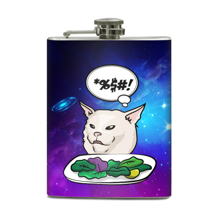 Металлическая фляжка с откручивающейся крышкой, которая имеет дополнительное крепление, так что не будет теряться. Принт наносится на специальную виниловую наклейку, которая покрывает боковые поверхности. Можно заказать со своим дизайном.