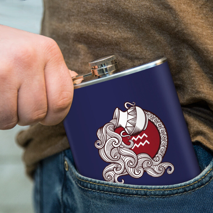 Металлическая фляжка с откручивающейся крышкой, которая имеет дополнительное крепление, так что не будет теряться. Принт наносится на специальную виниловую наклейку, которая покрывает боковые поверхности. Можно заказать со своим дизайном.