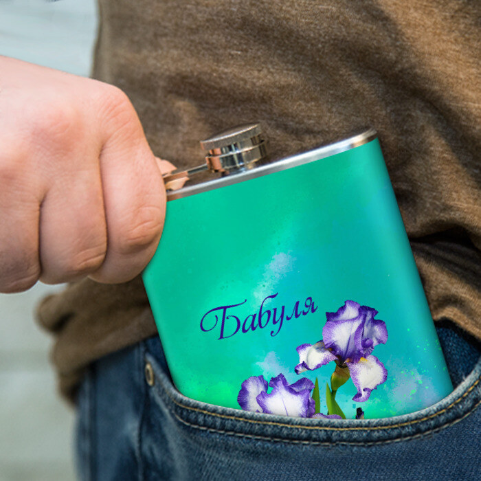 Металлическая фляжка с откручивающейся крышкой, которая имеет дополнительное крепление, так что не будет теряться. Принт наносится на специальную виниловую наклейку, которая покрывает боковые поверхности. Можно заказать со своим дизайном.
