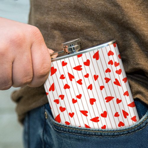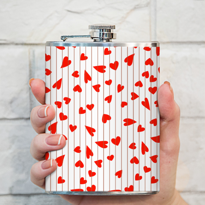 Металлическая фляжка с откручивающейся крышкой, которая имеет дополнительное крепление, так что не будет теряться. Принт наносится на специальную виниловую наклейку, которая покрывает боковые поверхности. Можно заказать со своим дизайном.