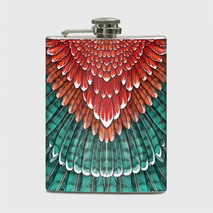 Металлическая фляжка с откручивающейся крышкой, которая имеет дополнительное крепление, так что не будет теряться. Принт наносится на специальную виниловую наклейку, которая покрывает боковые поверхности. Можно заказать со своим дизайном.