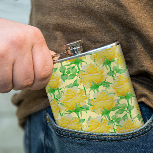 Металлическая фляжка с откручивающейся крышкой, которая имеет дополнительное крепление, так что не будет теряться. Принт наносится на специальную виниловую наклейку, которая покрывает боковые поверхности. Можно заказать со своим дизайном.