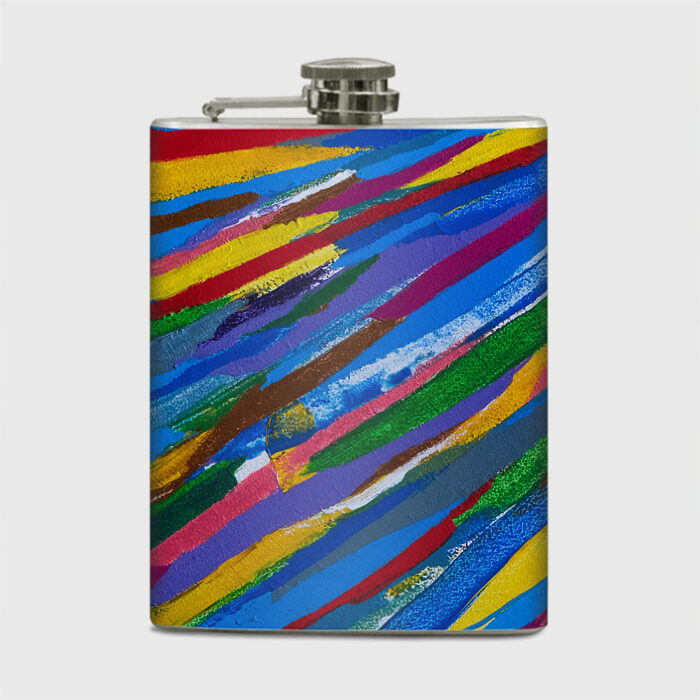 Металлическая фляжка с откручивающейся крышкой, которая имеет дополнительное крепление, так что не будет теряться. Принт наносится на специальную виниловую наклейку, которая покрывает боковые поверхности. Можно заказать со своим дизайном.