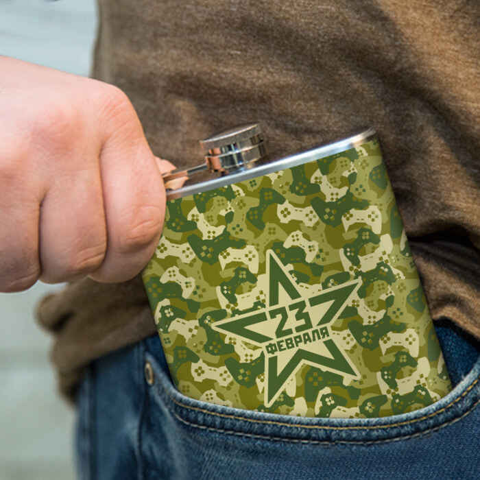 Металлическая фляжка с откручивающейся крышкой, которая имеет дополнительное крепление, так что не будет теряться. Принт наносится на специальную виниловую наклейку, которая покрывает боковые поверхности. Можно заказать со своим дизайном.