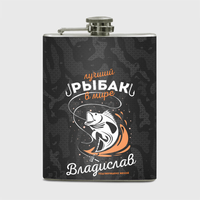 Фляга с принтом Камуфляж для рыбака Владислав