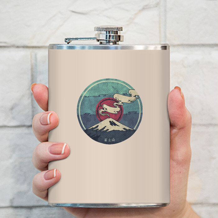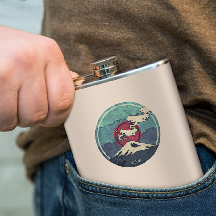 Металлическая фляжка с откручивающейся крышкой, которая имеет дополнительное крепление, так что не будет теряться. Принт наносится на специальную виниловую наклейку, которая покрывает боковые поверхности. Можно заказать со своим дизайном.