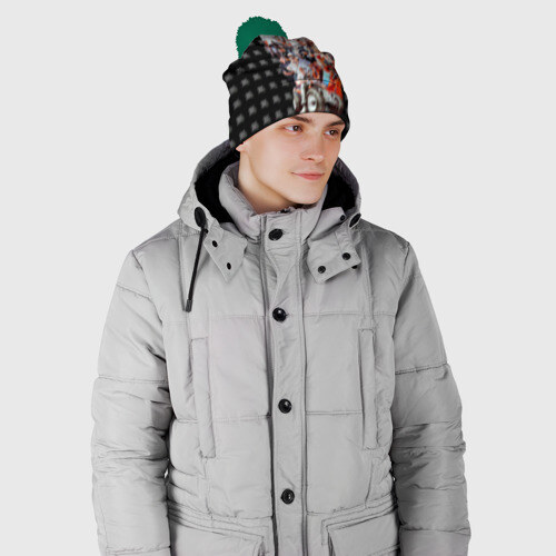 Шапка сшита из гладкой синтетической ткани, сверху крепится пушистый помпон. Двухслойная, между слоями спрятан тонкий теплый начес, за счет которого шапка согреет прохладной осенью и весной. Внутренний слой такой же гладкий и мягкий, как и внешний. Можно заказать шапку со своим рисунком.