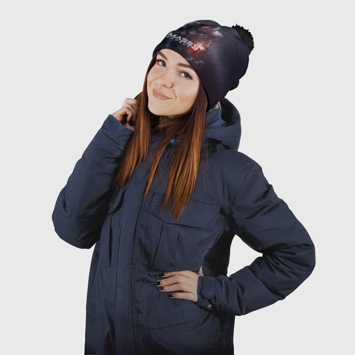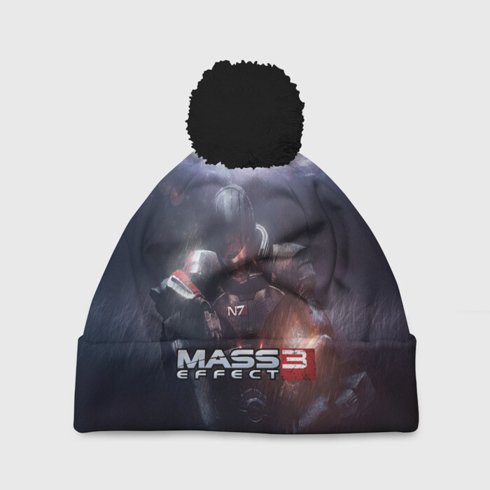 Шапка 3D c помпоном с принтом MASS EFFECT 3