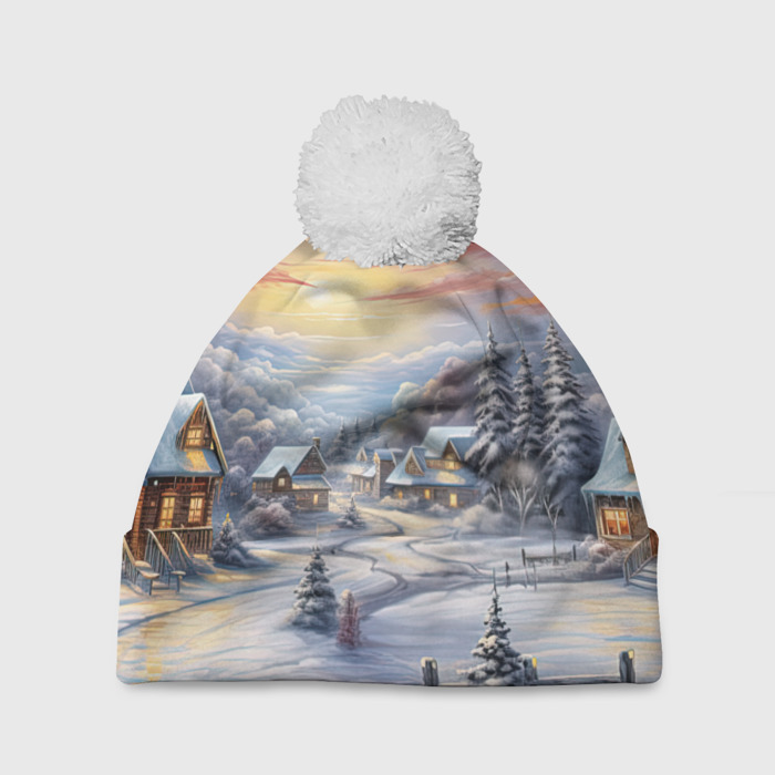Шапка 3D c помпоном с принтом Морозное утро с ароматом хвои