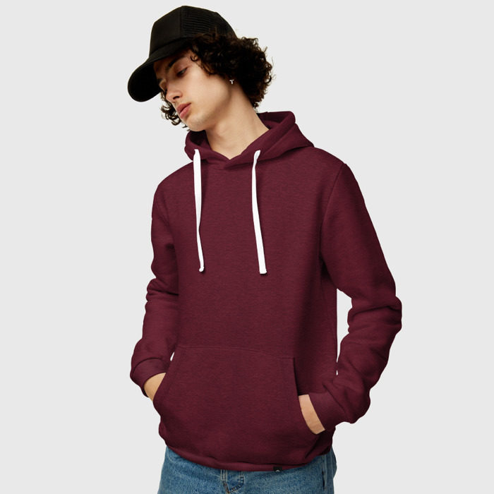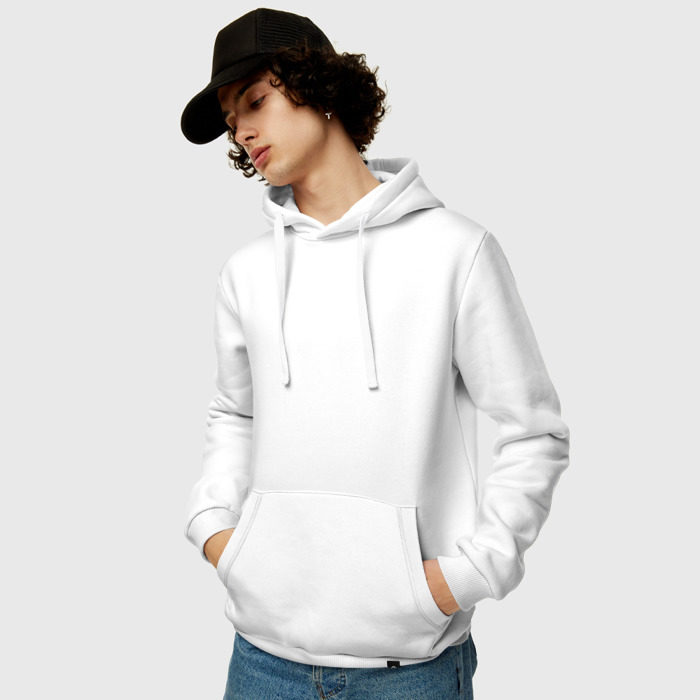 Базовая толстовка унисекс из хлопка с мягким и теплым начесом внутри. Капюшон регулируется шнурком, спереди большой карман. Можно заказать со своим принтом или вообще без него.