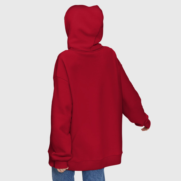 Унисекс худи с капюшоном и вместительным карманом спереди. Максимальный оверсайз с теплым и мягким начесом внутри.