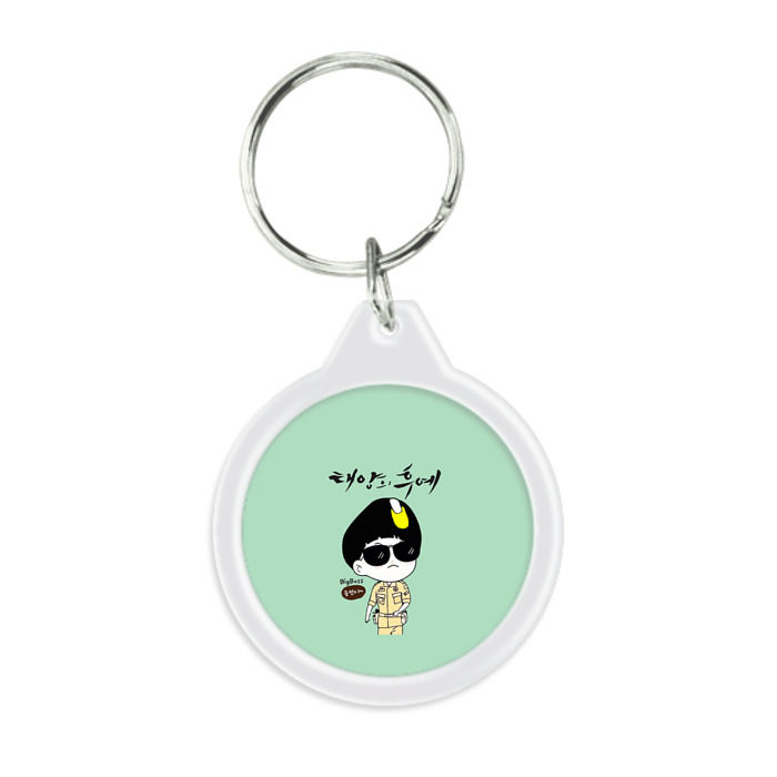 Круглый брелок из пластика с металлическим кольцом-креплением. Изображение наносится с одной стороны. Можно заказать со своим дизайном.