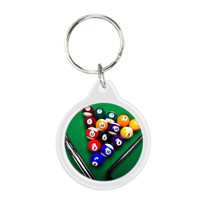 Круглый брелок из пластика с металлическим кольцом-креплением. Изображение наносится с одной стороны. Можно заказать со своим дизайном.