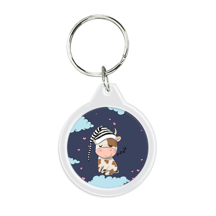 Круглый брелок из пластика с металлическим кольцом-креплением. Изображение наносится с одной стороны. Можно заказать со своим дизайном.