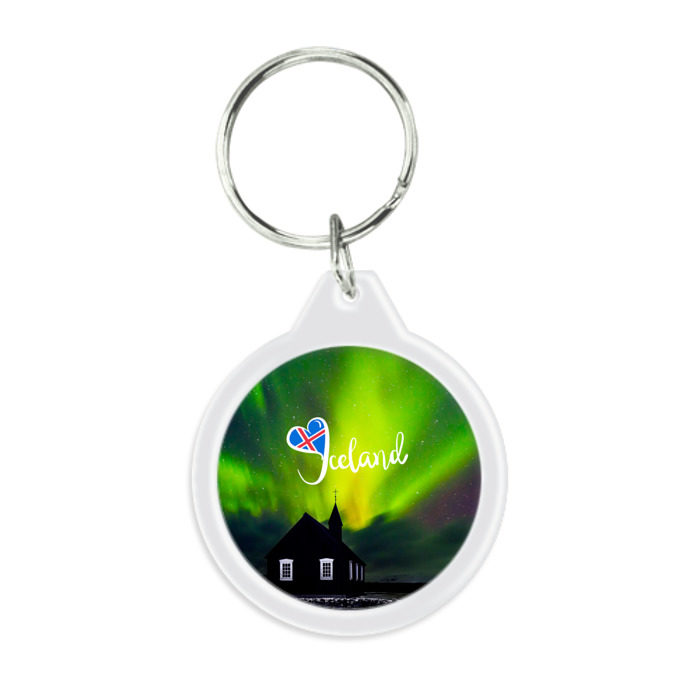 Круглый брелок из пластика с металлическим кольцом-креплением. Изображение наносится с одной стороны. Можно заказать со своим дизайном.