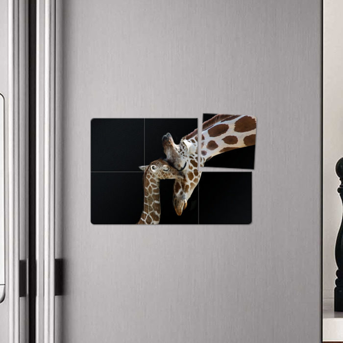 Магнитные плакаты отлично держатся на металлических поверхностях, например холодильниках, и станут необычным украшением интерьера. Плакат собирается из девяти составных частей, угловые магниты имеют аккуратные закруглённые углы. Изображение наносится методом сублимации.