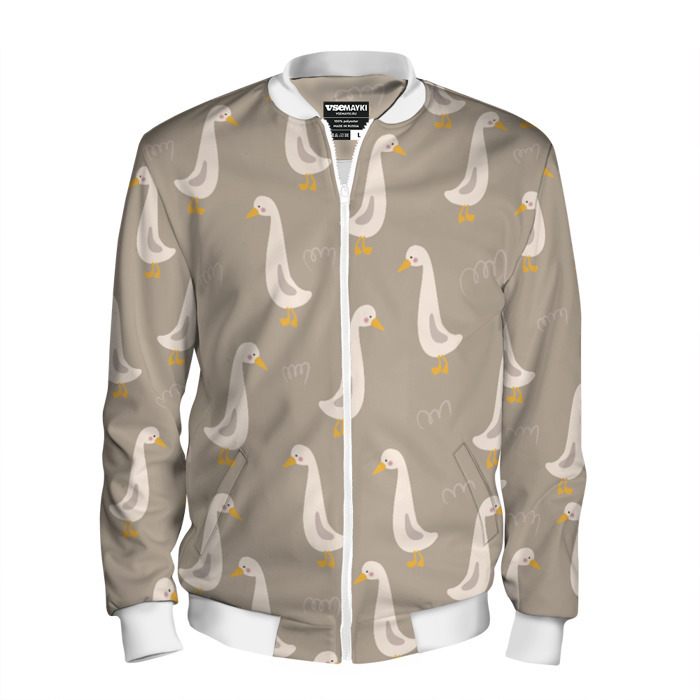 Мужской бомбер 3D Утки на травке бежевый