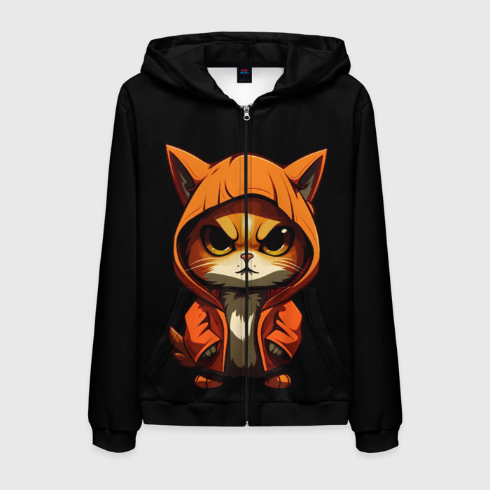 Мужская толстовка 3D на молнии Боевой рыжий котик