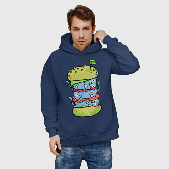 Актуальная худи из хлопка с мягким и теплым начесом внутри. Капюшон застегивается на магнитную кнопку. Можно заказать со своим принтом или вообще без него.