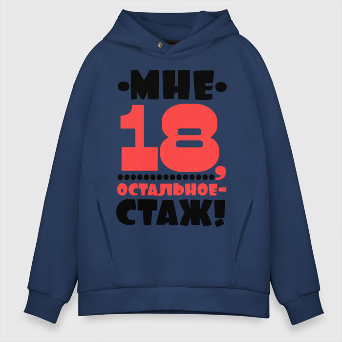 Мужское худи Oversize хлопок с принтом Мне 18 остальное - стаж