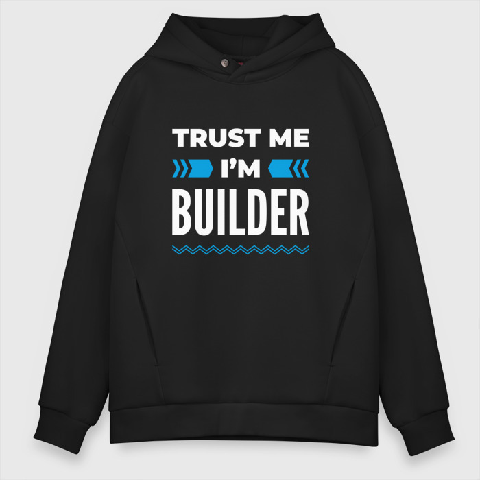 Мужское худи Oversize хлопок с принтом Trust me Im builder