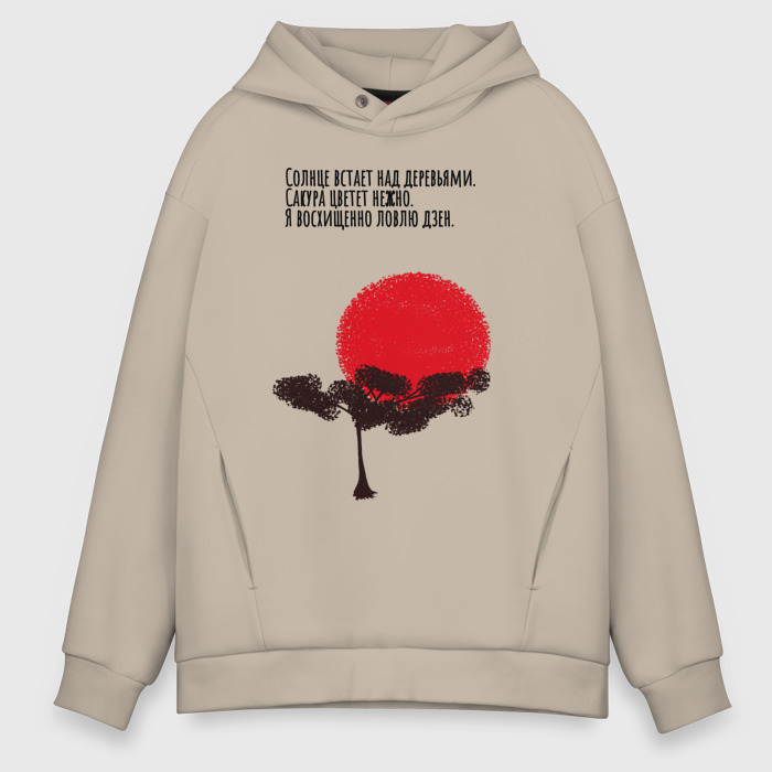 Мужские худи Oversize хлопок САКУРА НА ФОНЕ РАССВЕТА